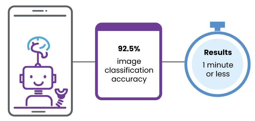 AI technology provides image classification results a minute or less with 92.5% image classification accuracy, which may be sent to the healthcare professional for diagnosis.